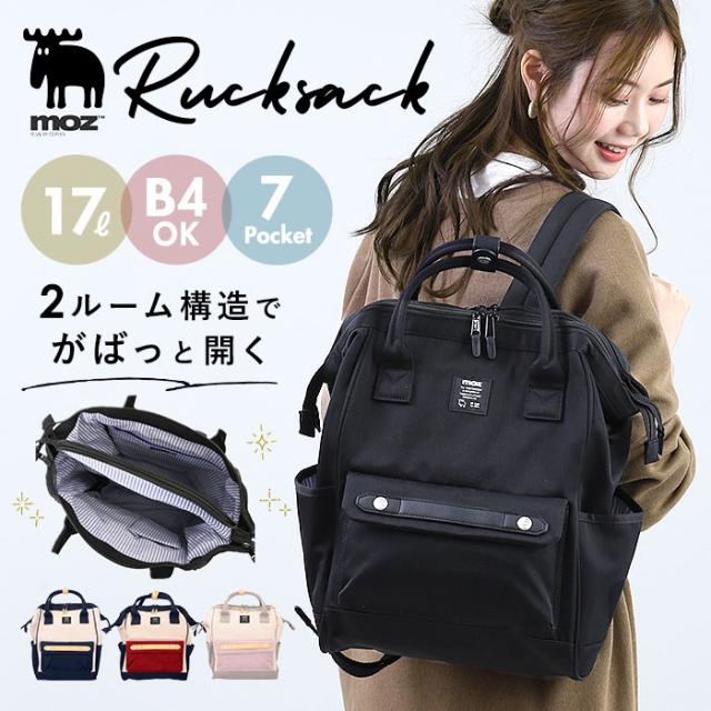 moz リュック モズ ZZCI-07L 通販 レディース リュックサック パックパック デイパック 通勤 通学 大容量 A4 B4 軽量 軽い レディースバッグ 2層 仕切り 仕分け ポケット 多い 背面ファスナー おしゃれ シンプル マザーズバッグ ママリュック メンズ ユニセックス