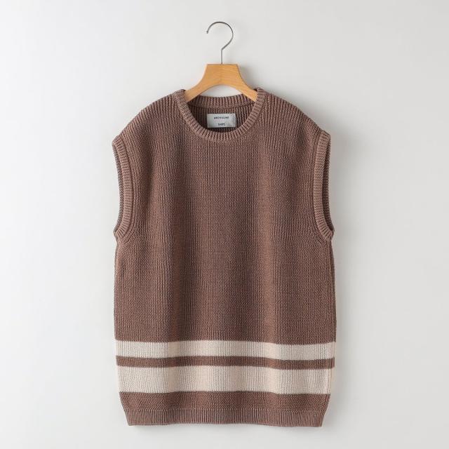 再生可能エネルギーでの編み立て、ジェンダー平等、国内の技術継承など様々な取り組みをされている国内のニッターにオーダーした、コットン100%のニットベスト。