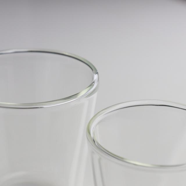 中間層が断熱材の役割を果たすので、保温・保冷効果があり、美味しい温度を長くキープしてくれます。また、普通のグラスは冷たいドリンクを入れると、結露しますが「Double wall」シリーズなら、表面に水滴が付きにくくテーブルを濡らす心配がありません。