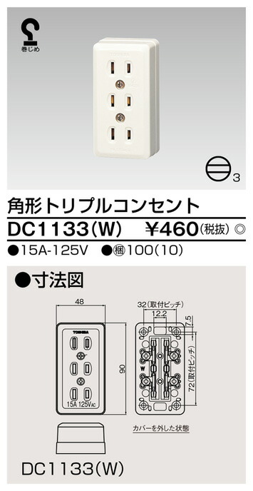 Я東芝 電設資材【DC1133(W)】角形トリプルコンセント