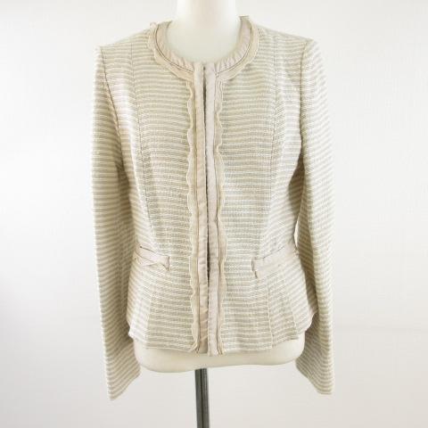【中古】エマジェイムス EMMAJAMES ノーカラージャケット 長袖 ボーダー ベージュ 白 9 *T36 レディース