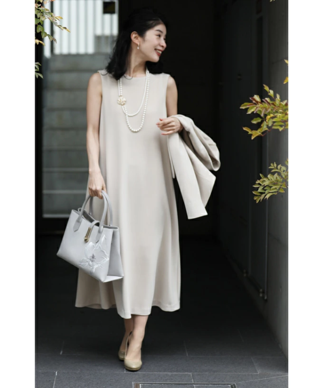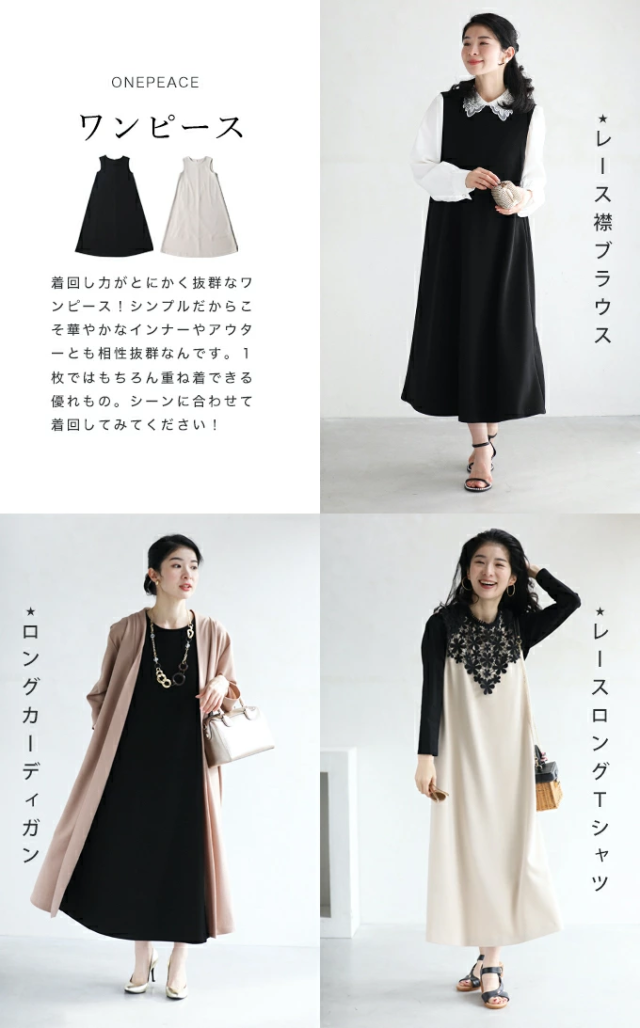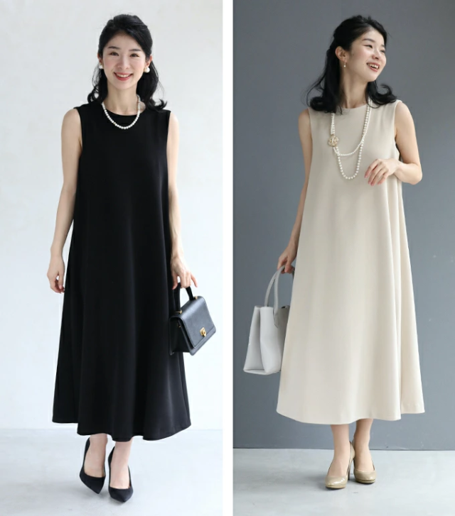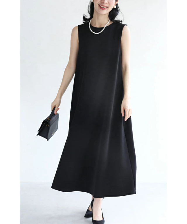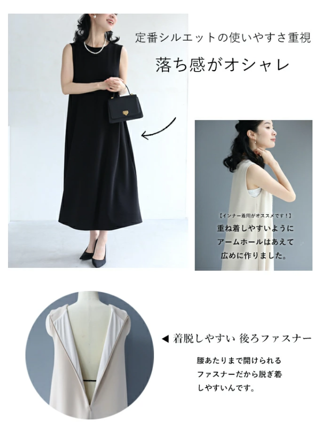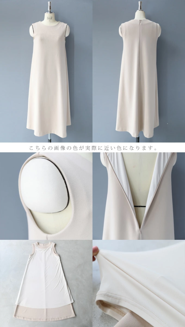 fch00014 新作 新着 再入荷 CAWAII FRENCHPAVE フレンチパヴェ エレガント ベーシック カジュアル 可愛い かわいい カワイイ おしゃれ オシャレ お洒落 個性 個性的 定番 ベーシック 大人かわいい 大人可愛い 上品 女性らしい デザイン スタンダード ナチュラル きれいめ キレイめ シンプル フェミニン レディース レディースファッション 大人 ママ ミセス 30代 40代 50代 60代 ワンピース 袖なし ノースリーブ 丸首 春服 春物 ブラック 黒 黒色 ベージュ ワンカラー ワントーン 日常着 普段着 日常使い