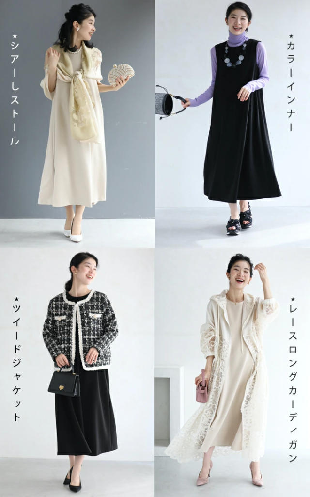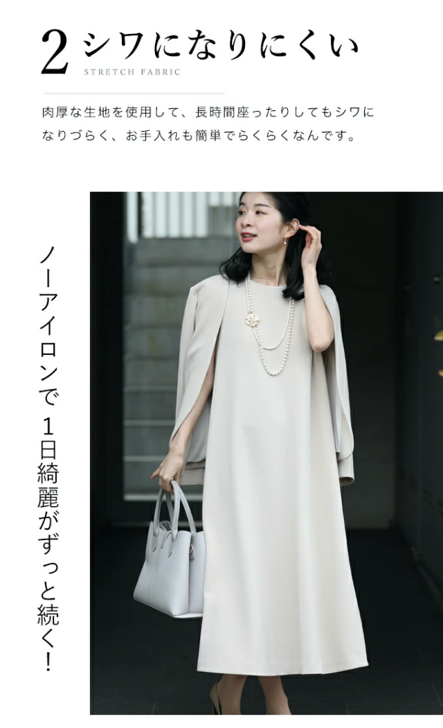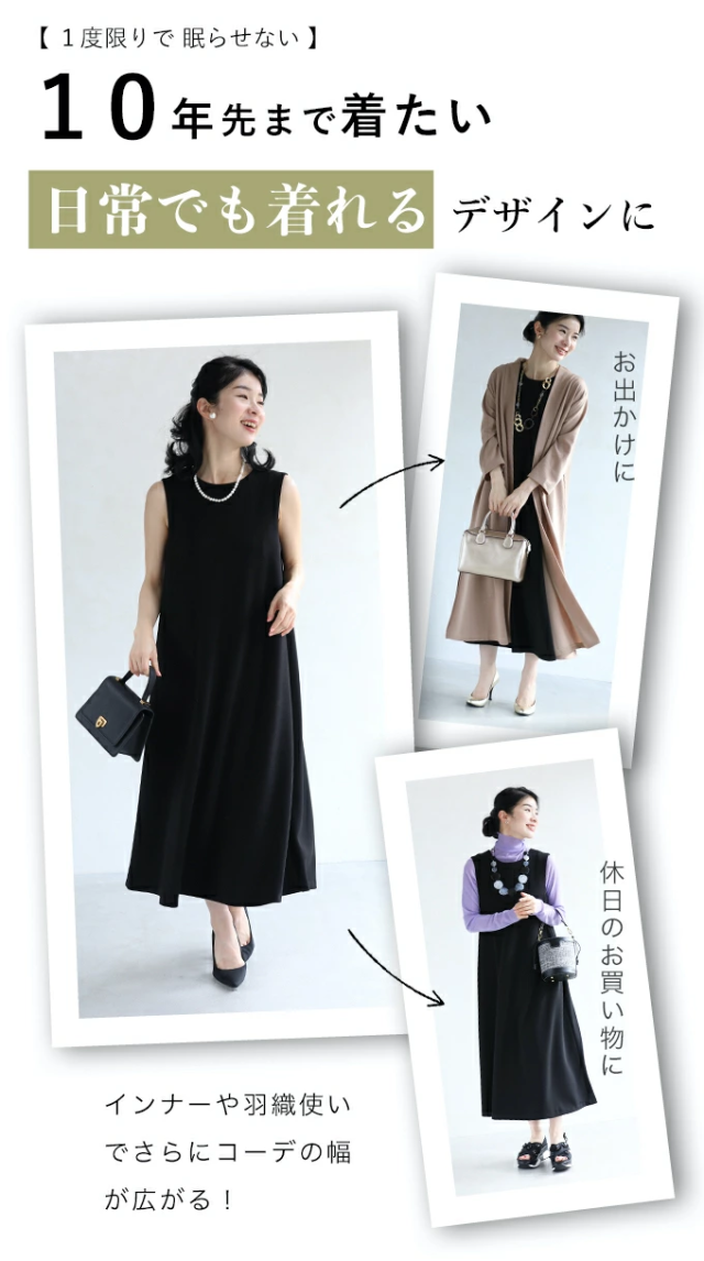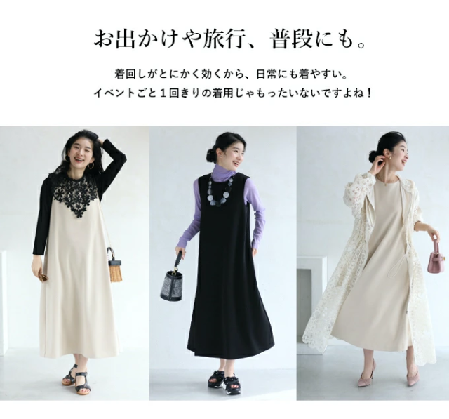 再入荷11月30日 体のラインを拾わない 重ね着ができる ワンピース fch00014 cawaii ノースリーブ ひざ下丈 ミモレ丈 体型カバー Iライン ストレッチ セレモニー 入学式 卒業式 ママスーツ 春夏 ブラックフォーマル