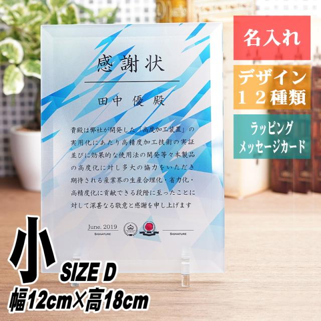 名入れ 社内表彰状 記念品 / 表彰盾 PS-8(小) 厚5mmガラス / 退職祝い 表彰状 感謝状 周年記念 勤続表彰