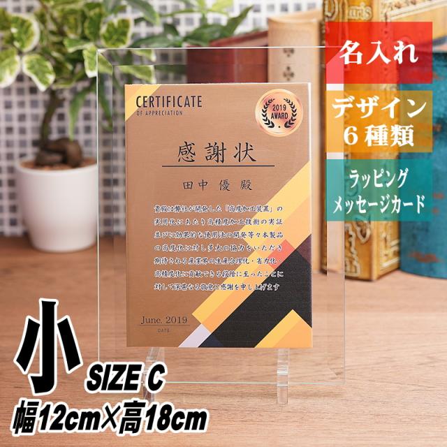 名入れの贈り物 ガラス+金属プレート 表彰盾 PS-9(小) 幅12cm×高18cm 記念品 退職祝い 表彰状 感謝状