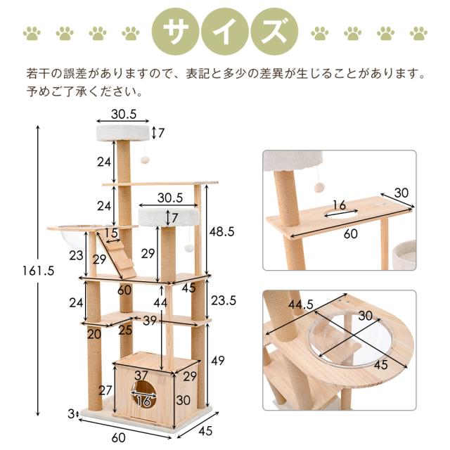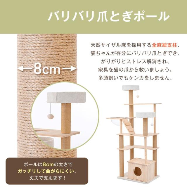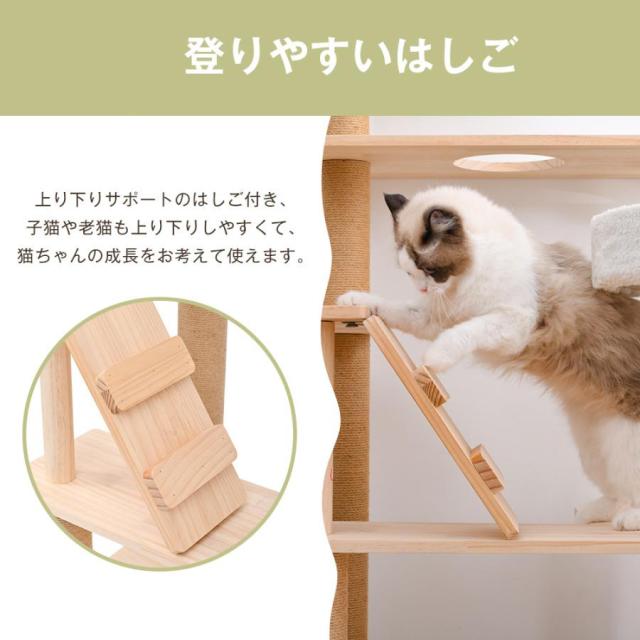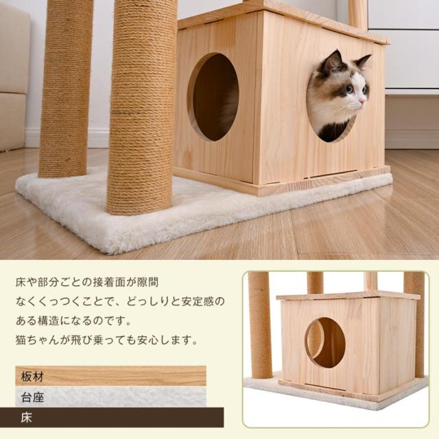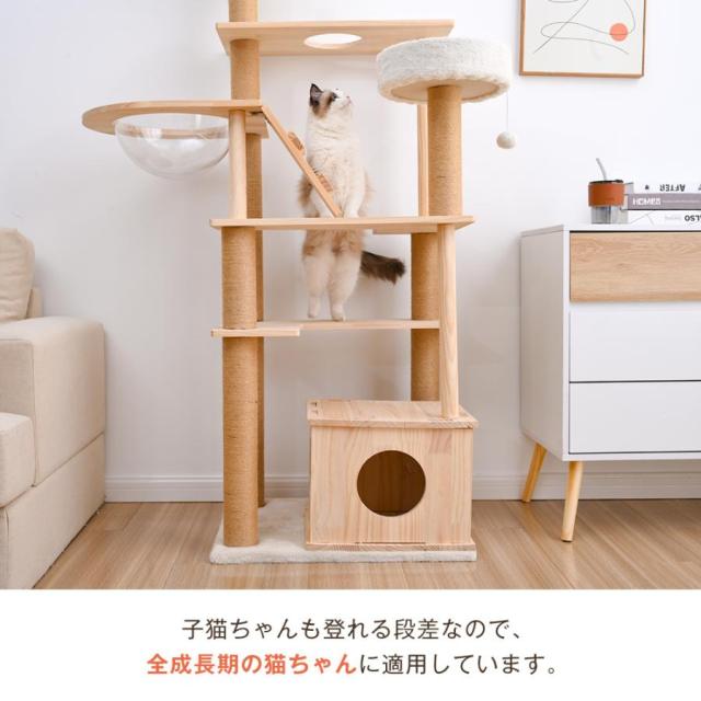 「クーポン配布中」木製 キャットタワー 猫タワー キャットハウス 透明宇宙船 麻紐支柱 爪とぎ 頑丈 据え置き型 展望台 隠れ家階段 機能満載 猫ベッド ペット用品 多頭飼い 運動不足 ストレス解消 ネコ運動 省スペース