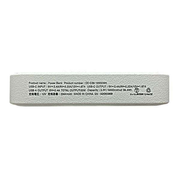 エレコム DE-C39-12000WH ホワイト モバイルバッテリー 大容量 急速充電 12000mAh USB PD対応 20W 送料無料