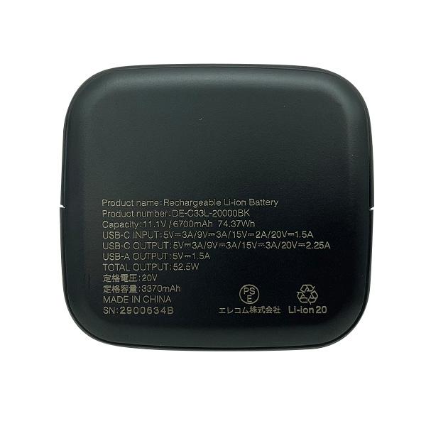 エレコム DE-C33L-20000BK ブラック モバイルバッテリー 20100mAh 大容量 USB PD対応52.5W Type-C×1 USB-A×1 送料無料