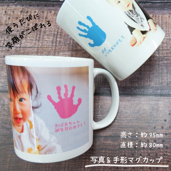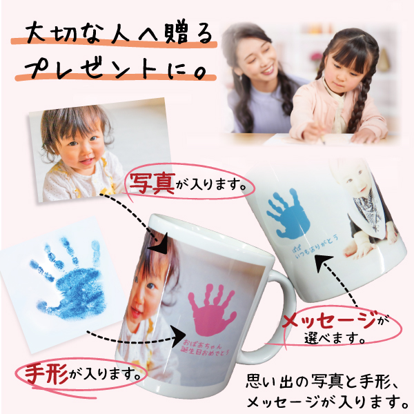 手形 マグカップ 写真 手形アート プリント プレゼント ギフト 子どもの絵 人気 祖母 祖父 おばあちゃん おじいちゃん お父さん お母さん 母の日 誕生日 記念日 子供 ベビー 赤ちゃん 女の子 男の子 子供 かわいい オリジナルグッズ 還暦祝い 米寿 60代 70代 80代