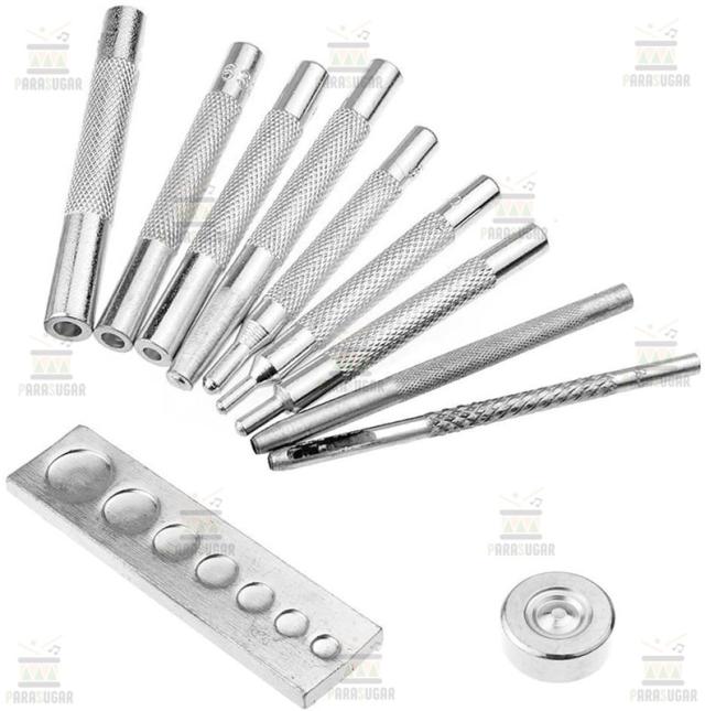 ●レザークラフト ホック打ち工具11点セット、様々なホックの取付作業に必須の定番セットになります。