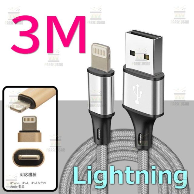 【 3M 】 断線防止 充電ケーブル iPhone シルバー 充電 急速充電 ライトニングケーブル USB2.0 ケーブル 高速データ転送 高耐久ナイロン 充電器 アダプタ