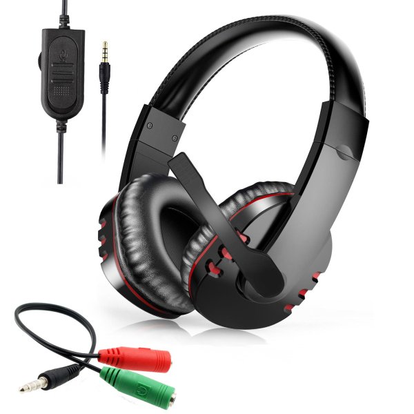 有線 マイク付き ゲーミングヘッドセット レッド 3.5mm 4極 PS4 ボイスチャット 両耳 ゲーミングヘッドホン PC ゲーム オンライン