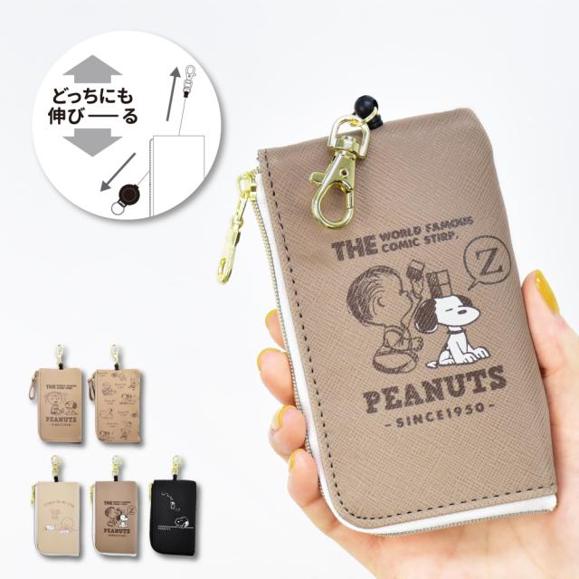 スヌーピー キーケース パスケース 定期入れ カードケース リール付き 合皮 PUレザー コンパクト 小さい 大人 大学生 高校生 中学生 レディース 女子 メンズ 通勤 通学 新生活 新学期 便利 丈夫 可愛い かわいい おしゃれ 人気 キャラクター グッズ