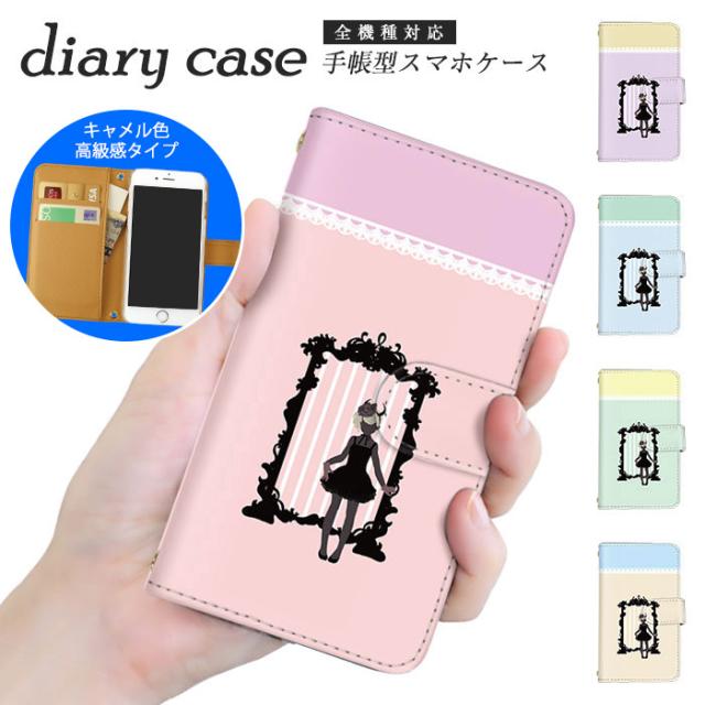 スマホケース 手帳型 全機種対応 Galaxy A53 5G SCG15 ケース AQUOS sense5G スマホケース 鏡 aquos スマホケース カード nova 3 ケース GalaxyA7 スマホカバー arrows 5g so-04j sh-m05 おんなのこ ボーダー クリア ショルダー