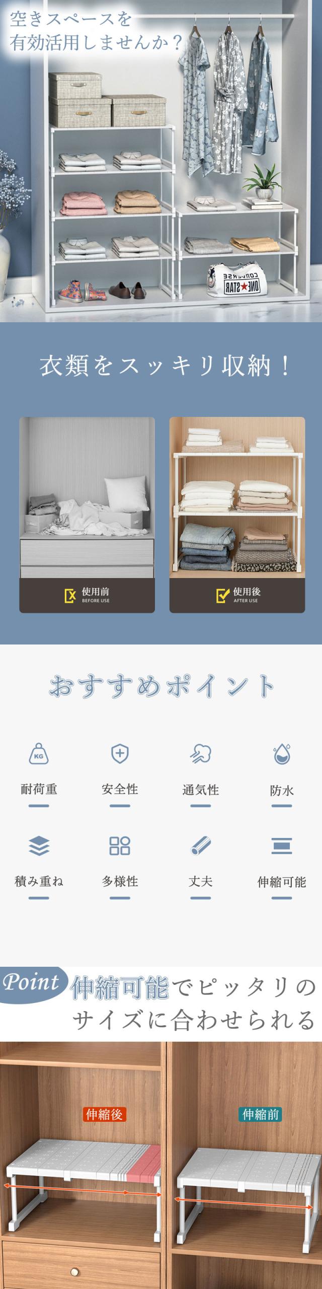 伸縮棚 積み重ね 幅 87-108cm 高さ 22cm 32cm 奥行 42cm 伸縮ラック クローゼット 押入れ 通気性 収納 防水 丈夫 頑丈 整理棚 シンク下 ワイド 空間活用 省スペース キッチンラック 空きスペース 隙間 新生活 すき間 衣替え スリム 長さ調整 押し入れ キッチン 玄関 脱衣所