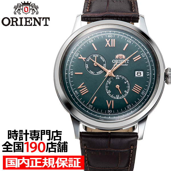 オリエント Bambino バンビーノ RN-AK0703E メンズ 腕時計 機械式 自動巻き グリーンダイヤル ブラウン 革ベルト