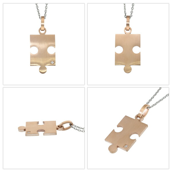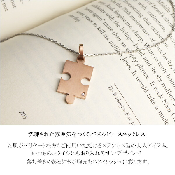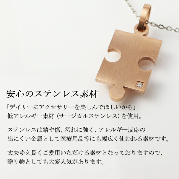 パズル ピース ネックレス ピンクゴールド サージカルステンレス 金属アレルギーフリー 一粒 ジルコニア スタイリッシュ 繊細 刻印 大きめ 恋人 彼女