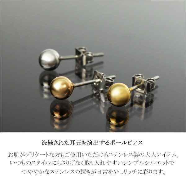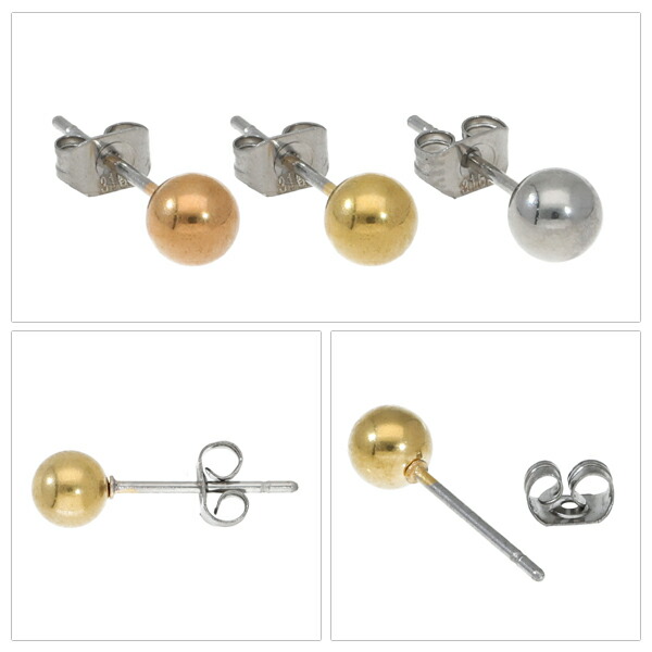 選べる3カラー 5.0mm ボール スタッド ピアス 1P 片耳用 ステンレス スタッドピアス シルバー ゴールド ピンクゴールド サージカルステンレス