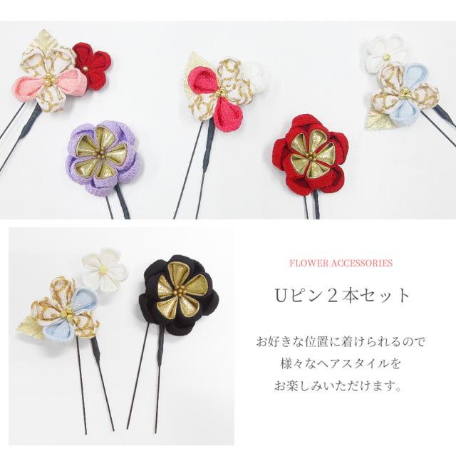 成人式 振袖 髪飾り 2点セット 振袖用 髪飾りセット Uピン ヘアアクセサリー コサージュ 和装 アクセサリー 赤 白 黒 薄紫 青 ピンク 前撮り 七五三 753 浴衣 袴 入学式 卒業式 結婚式 ブライダル 披露宴 和風 洋風 Charmant シャルマン
