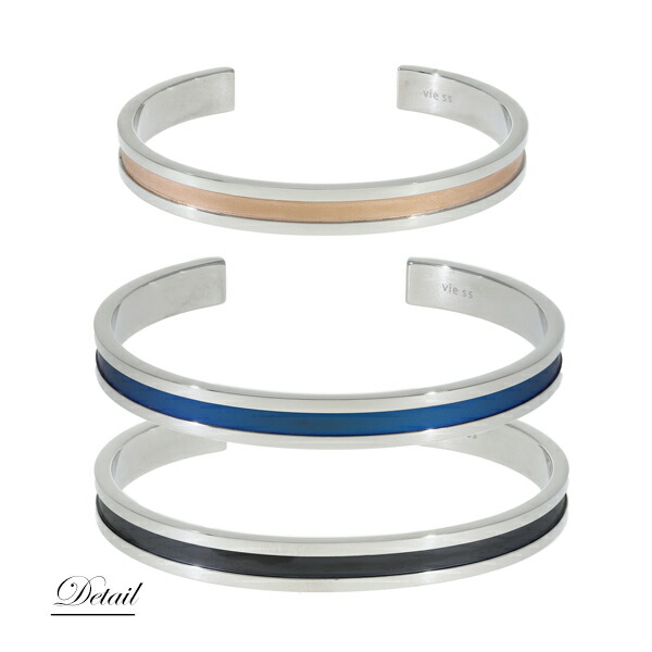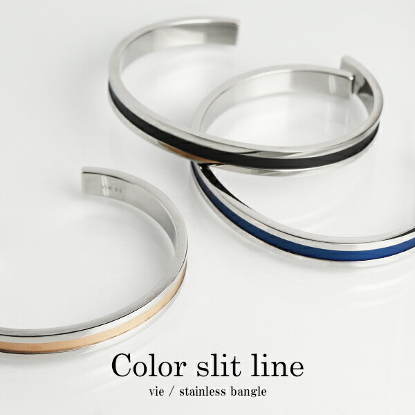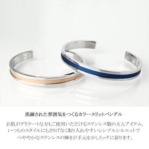 スリット ライン ペアバングル ペアブレスレット サージカルステンレス 金属アレルギーフリー バングル ブレスレット ブルー ブラック ピンク