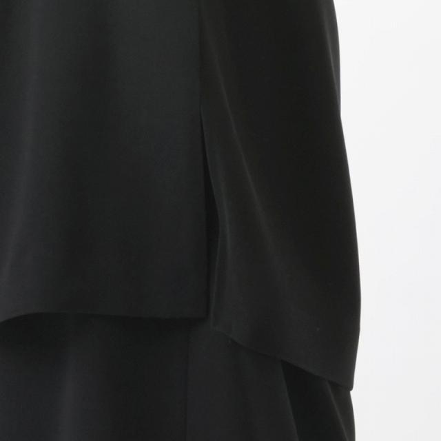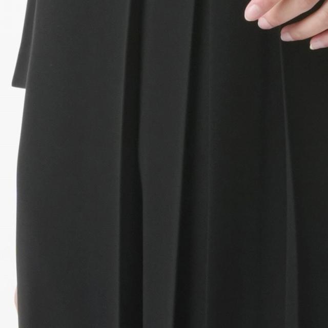 | サイドのスリットで動きやすさ抜群。忙しい葬儀も楽々動けます。 | 身頃の中心に入った縦ラインのプリーツで細くすっきり見えます。 |