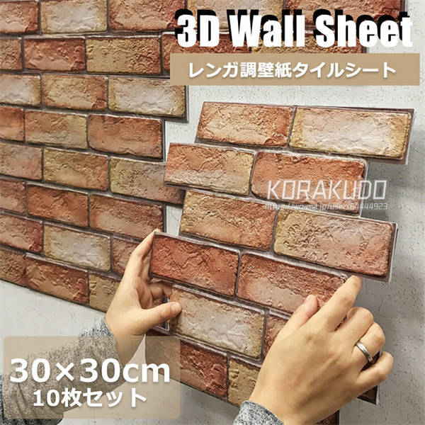3D 壁紙 レンガ シート 立体 赤レンガ 接着剤不要 DIY ウォールステッカー 30×30cm PVC 断熱性 防水性 難燃性 加工 クッション シール 薄めタイプ 壁用 貼るだけ リアル風 10枚セット