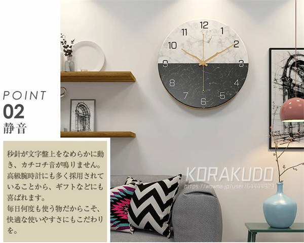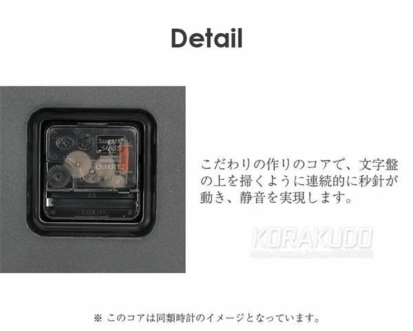 ◆モダンなフレームが文字盤とマッチして、インテリアに洗練された印象を与えます。 ◆カチカチ音が鳴らず、静かに動きます。子ども部屋でも安心してご利用いただけます。