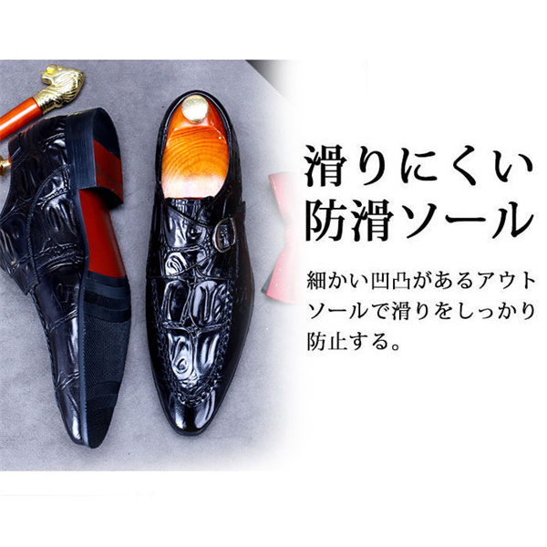 ポイント超超祭利用可 ビジネスシューズ 靴 本革 メンズ スリッポン モンクストラップ ロングノーズ スリッポン ローファー フォーマル 幅広 紳士靴 プレーントゥ