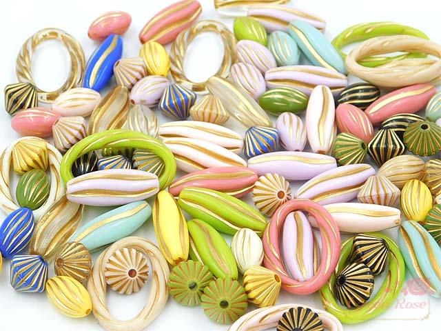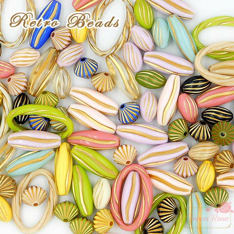 レトロなビーズミックス ゴールドライン入りビーズ アクリルビーズ ミックス約100g アクリル ビーズアンドパーツ 樹脂 プラスチック アクセサリーパーツ beads542 GreenRoseYumi