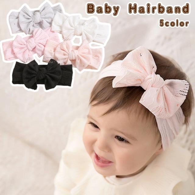 ヘアバンド ヘアアクセサリー リボン ベビー 赤ちゃん 女の子 子供用 キッズ ヘッドバンド ヘアターバン 幅広 レース かわい