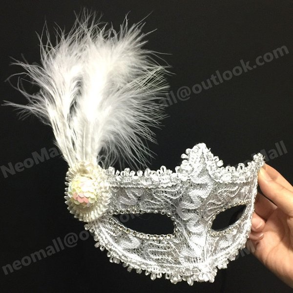 高品質☆魅惑的 フェザー アイマスク 【032・ホワイト】 仮面 仮装 舞踏会 マスク ベネチアン パーティー 変装 コスプレ 衣装