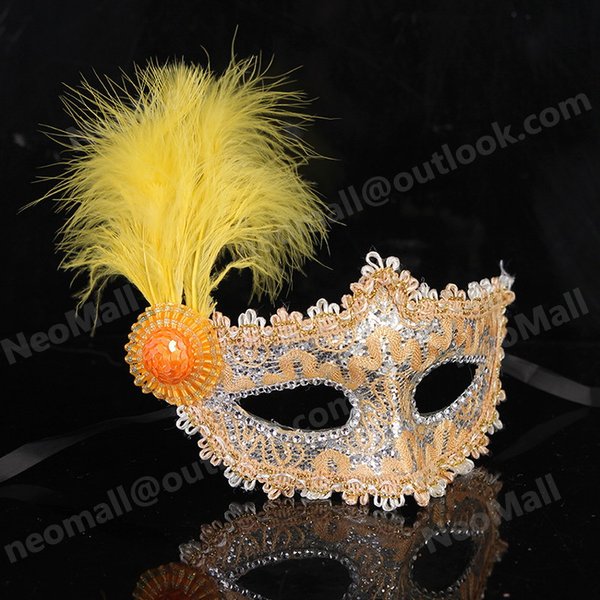 高品質☆魅惑的 フェザー アイマスク 【032・イエロー】 仮面 仮装 舞踏会 マスク ベネチアン パーティー 変装 コスプレ 衣装