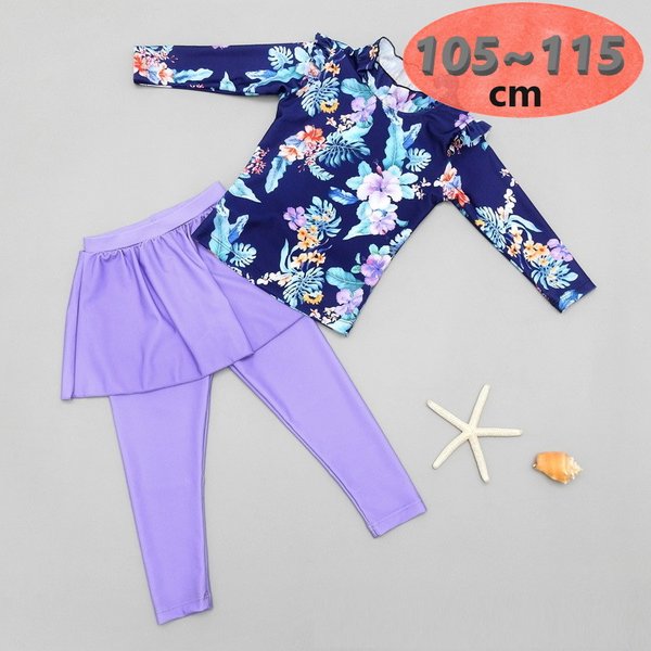 ラッシュガード 水着 上下セットアップ ブルー【XL】105-115cm 子供服 女の子 レギンス 長袖 ズボン 日よけ ビキニ 海 プール swi-108
