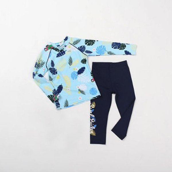 ラッシュガード 水着 上下セットアップ ブルー 子供服 男女 レギンス 長袖 ズボン 日よけ ビキニ 海 プール swi-112