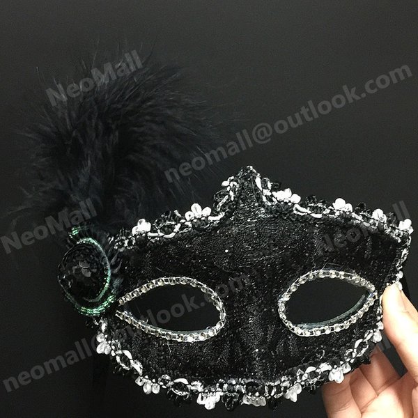高品質☆魅惑的 フェザー アイマスク 【032・ブラック】 仮面 仮装 舞踏会 マスク ベネチアン パーティー 変装 コスプレ 衣装