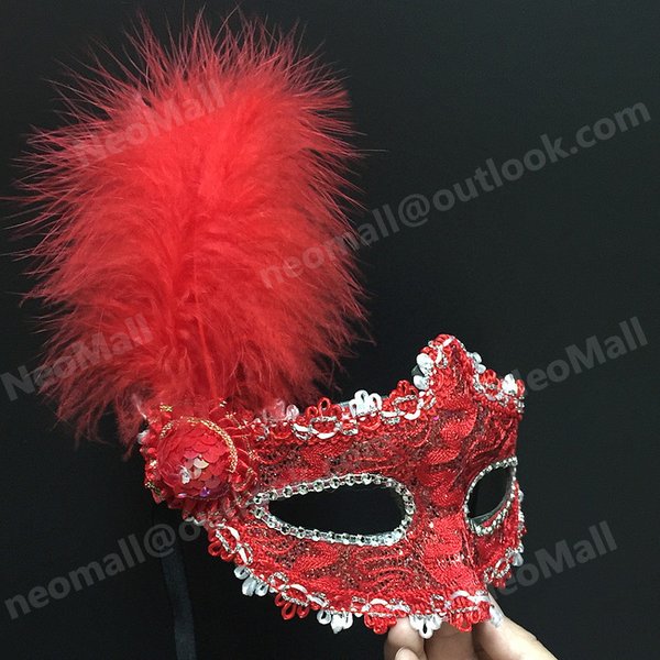 高品質☆魅惑的 フェザー アイマスク 【032・レッド】 仮面 仮装 舞踏会 マスク ベネチアン パーティー 変装 コスプレ 衣装