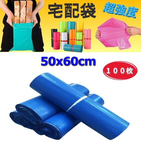 | 超強度◎裂けない 宅配用ビニール袋 50x60cm テープ付き ブルー カラー袋 梱包袋 ポリ袋 防水 封筒 | ||||||||||
