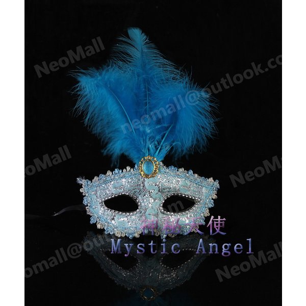 高品質☆魅惑的 フェザー アイマスク 【030・ブルー】 仮面 仮装 舞踏会 マスク ベネチアン パーティー 変装 コスプレ 衣装
