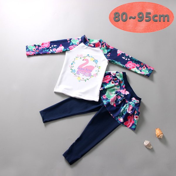 ラッシュガード 水着 上下セットアップ ブルー【M】80-95cm 子供服 女の子 レギンス 長袖 ズボン 日よけ ビキニ 海 プール swi-107