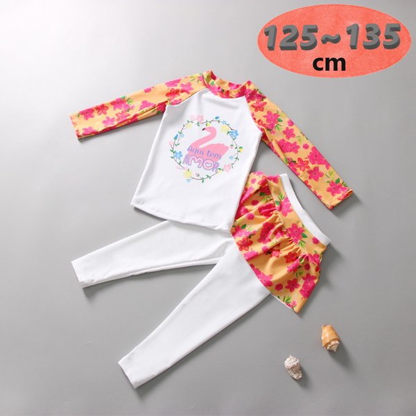 ラッシュガード 水着 上下セットアップ ピンク【3XL】125-135cm 子供服 女の子 レギンス 長袖 ズボン 日よけ ビキニ 海 プール swi-107