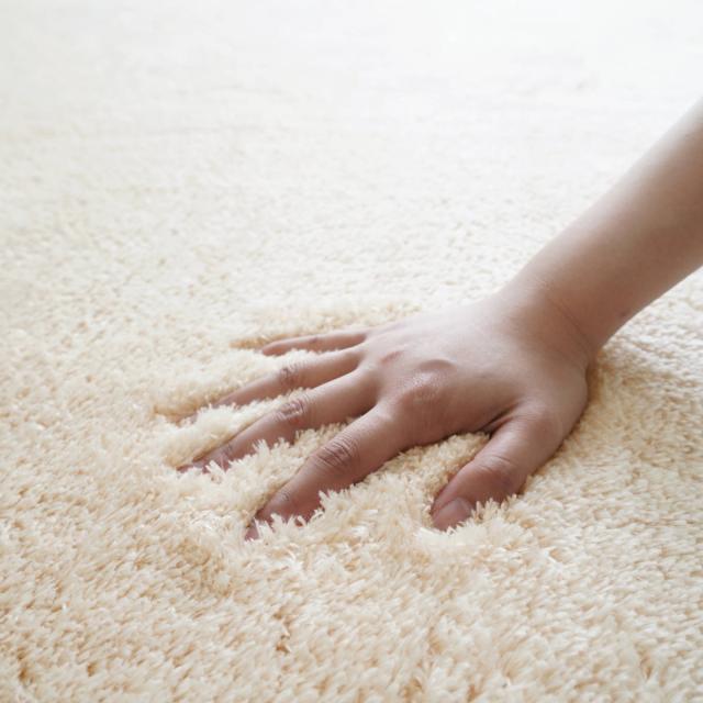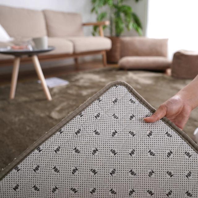 裏材にはオリジナルNPドットのすべり止め加工が施されています。フローリングの上でもラグがズレにくく、お掃除の際もストレスがありません。