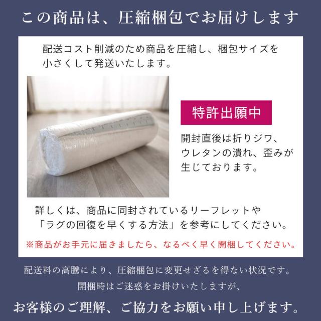 床暖房、ホットカーペットに対応しているので、カバーとしてもお使いいただけます。厚手のラグですが、じんわりと暖かさを伝えてくれます。