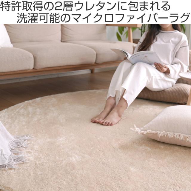ラグ マイクロファイバー 2層ウレタン 直径190cm 洗えるラグ ( ラグマット カーペット 絨毯 厚手 ウレタン 2層 敷きパッド 円形 丸 高反発 ホットカーペット 床暖 対応 遮音 無地 インテリアマット 洗える すべり止め )