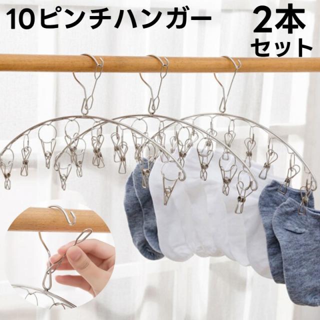 ピンチハンガー 10ピンチ 2本セット ステンレス 洗濯ばさみ 物干し 部屋干し 室内干し バスタオル ベランダ 防風 省スペー