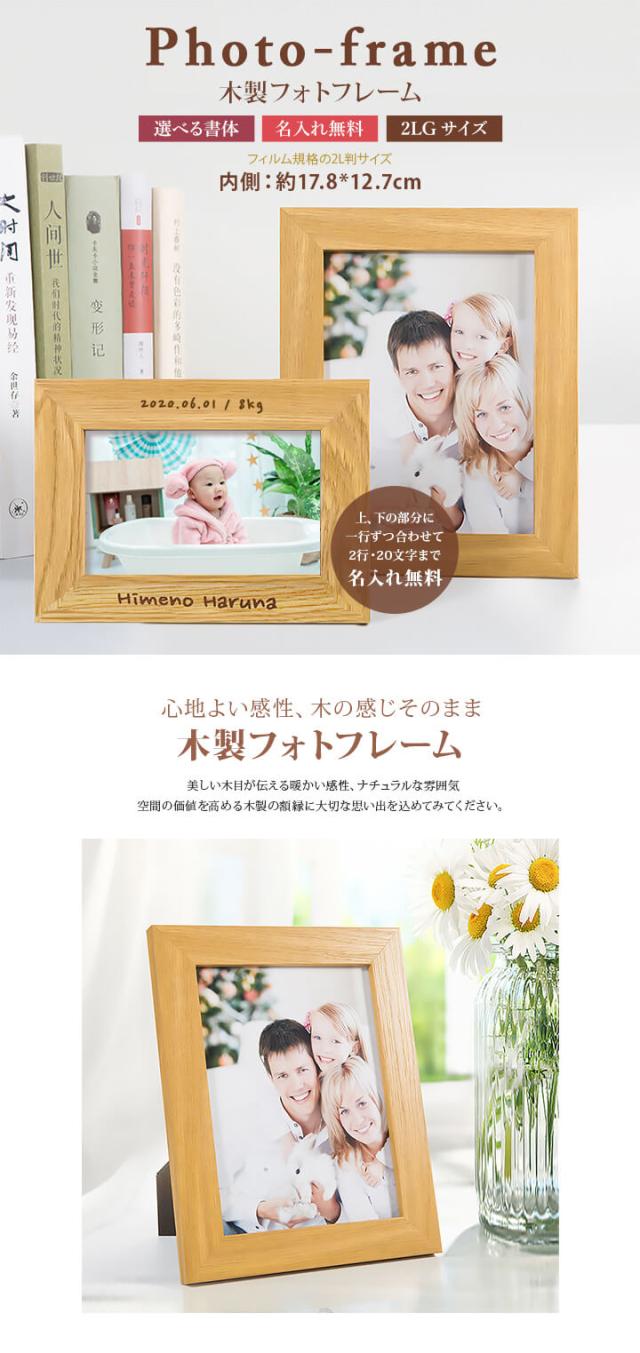木製 名入れ木製フォトフレーム【名入れ無料】写真立て フォトスタンド 2L判サイズ シンプル お祝い 記録 誕生祝い インテリア 木製 名入れギフト 卒業記念 刻印 名入れ 特別なプレゼント aruon 名入れ工房
