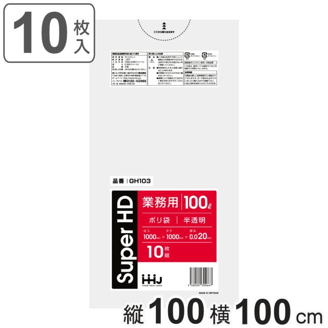 ゴミ袋 100L 100×100cm 厚さ0.02mm 10枚入 半透明 10袋セット GH103 ( ポリ袋 ごみ袋 100リットル 100枚 ゴミ 袋 縦100cm 横100cm カサカサ ポリエチレン キッチン リビング 消耗品 常備品 )