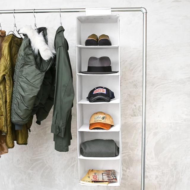| サイズ | 吊り下げ時の寸法:縦125cm×横30cm×マチ30cm(トップ含む) 一段の高さ:約19cm |