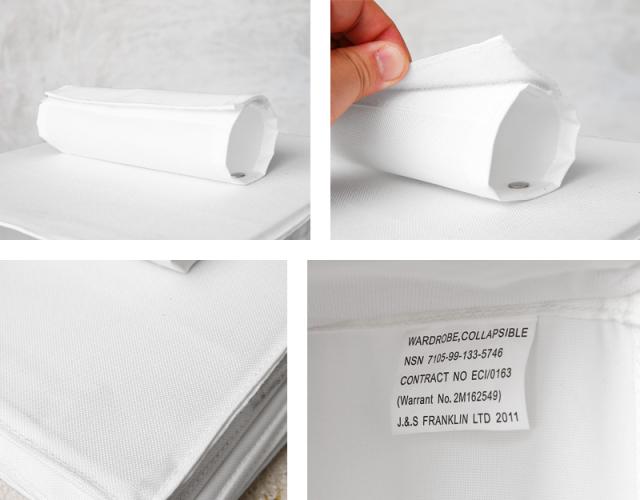 英国陸軍で採用されていた吊り下げ式ワードローブハンガーが入荷しました。丈夫でお手入れし易い生地で、6段の棚を備えています。トップにはしっかりと重さに耐えることができるループ部分があり、ベルクロ開閉でクローゼット内のパイプやガーメントラックに簡単に取り付け可能になっています。帽子やショール、靴、バッグなどクローゼットの中で収納場所に困ってしまう細々としたファッション小物をスッキリとオーガナイズします。また、使わない時や移動時などはコンパクトに畳んで収納することができます。清潔感のあるホワイトカラーがインテリアの邪魔をせず、飽きのこないデザインが使い勝手の良い収納アイテムです。