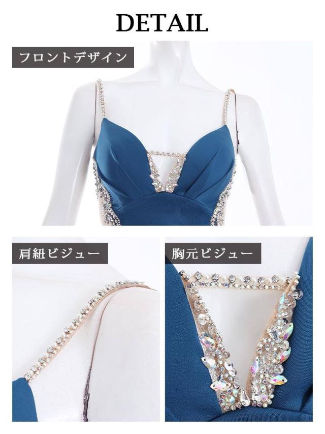 ☆深め入った胸元のカッティングからの谷間魅せが色気たっぷり!!また谷間の上を沿うようにあしらったビジューストラップがセクシーさを際立たせるキャバクラドレスです。