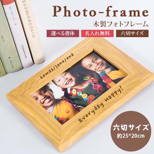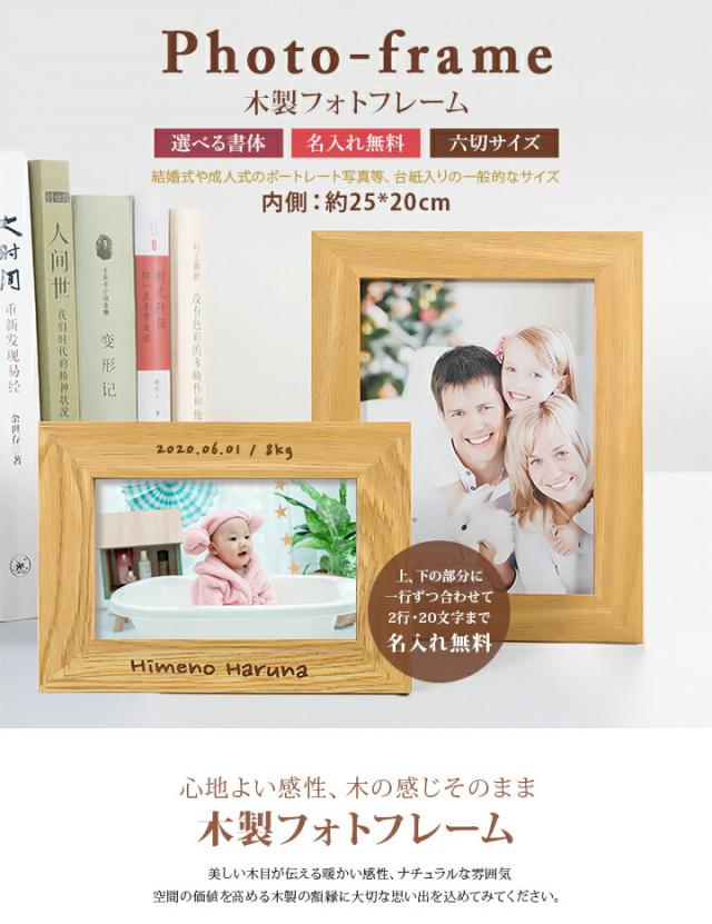 木製 名入れ木製フォトフレーム【名入れ無料】写真立て フォトスタンド 六切サイズ 約25cm*20cm シンプル お祝い 記録 誕生祝い インテリア 木製 名入れギフト 卒業記念 刻印 名入れ 特別なプレゼント aruon 名入れ工房